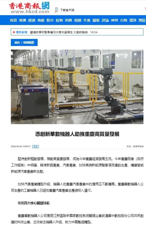 近日,香港商报发布《凭创新华数机器人助推重庆高质量发展》,关注水土新城华数机器人,一起来看看~